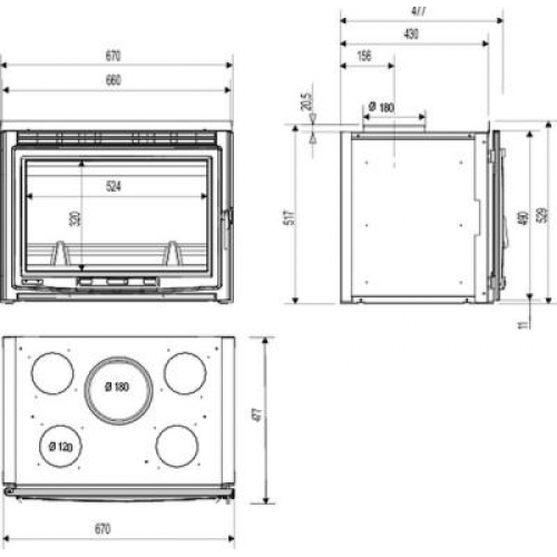Каминная топка-вставка FM 761 L. Боковое открывание дверцы.